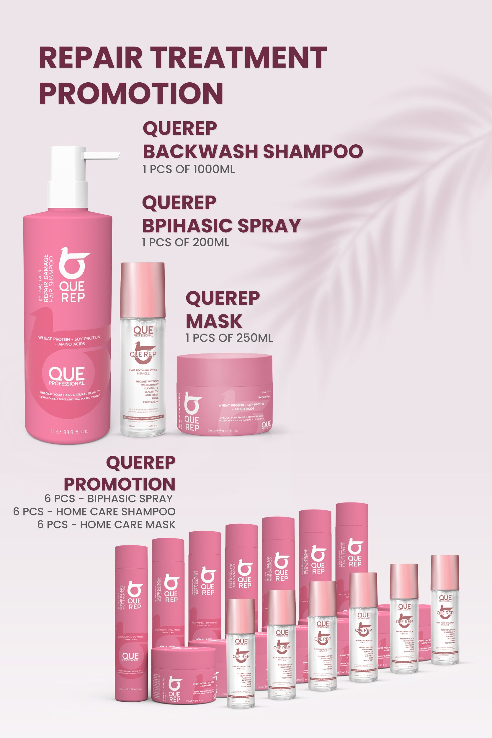 استعيدي شعركِ التالف مع مجموعة QUEREP Repair Treatment Premium! بسعر 699.00 درهمًا إماراتيًا، تتضمن هذه المجموعة شامبو QUEREO سعة 1000 مل، وقناع QUEREP سعة 250 مل، وبخاخ QUEREP Miracle Spray، و6 أنواع شامبو QUEREP للعناية المنزلية سعة 300 مل، و6 أقنعة منزلية سعة 250 مل، مما يجعلها مثالية للاستخدام المهني والمنزلي.