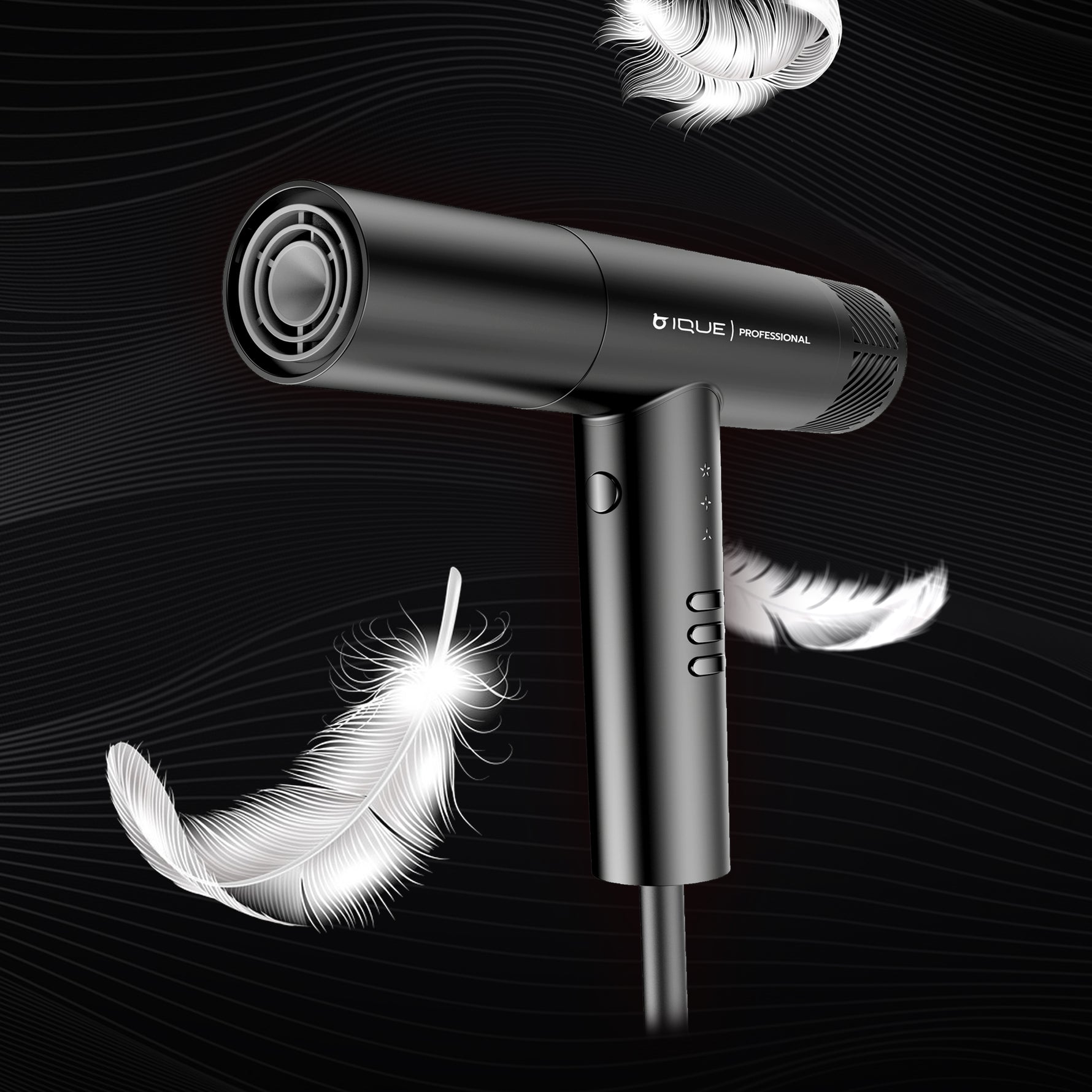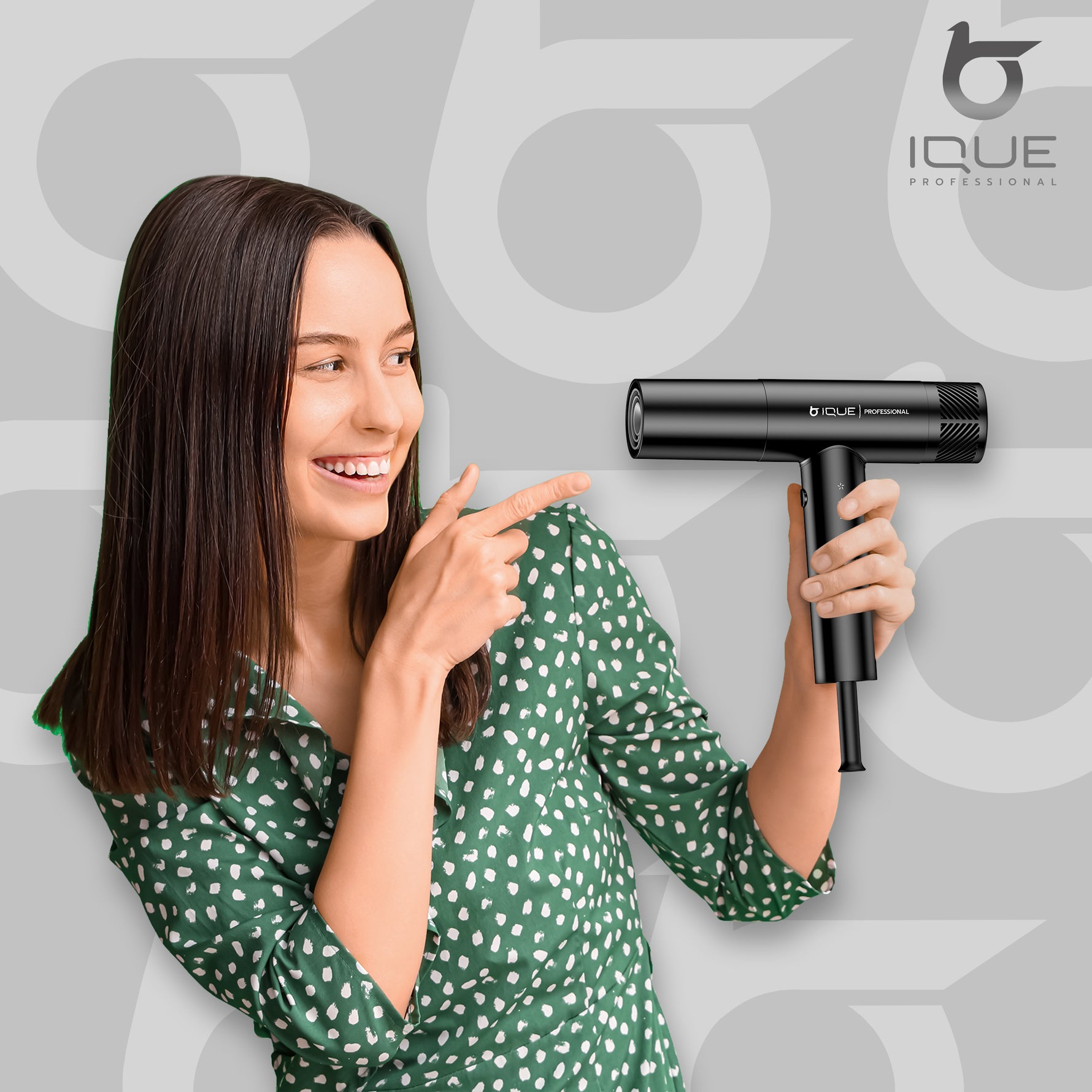 استمتعي بقوة الصالون بتصميم خفيف الوزن - مجفف الشعر IQUE يجعل تصفيف الشعر سهلاً وخفيف الوزن.